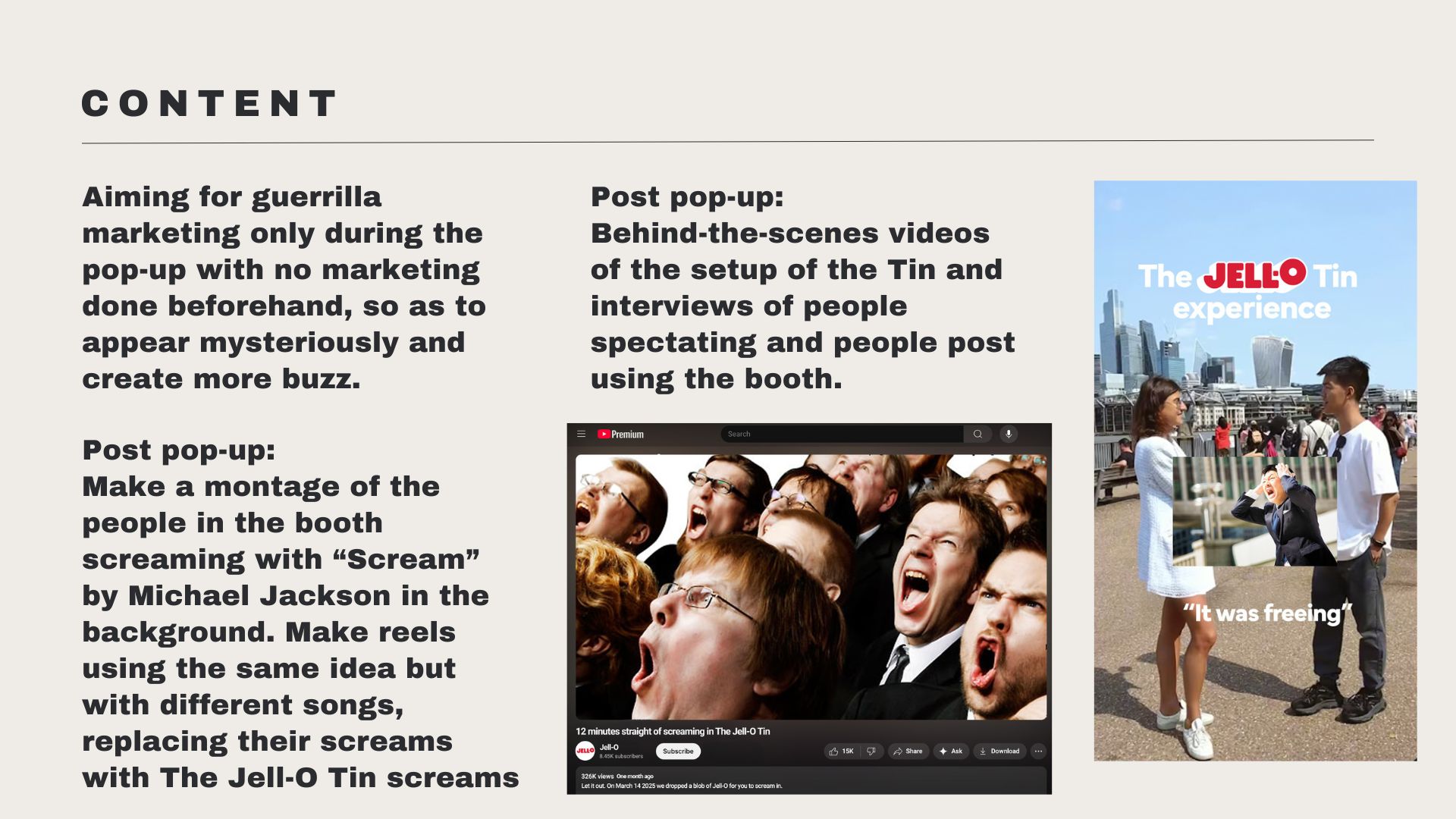 Elements: Two brand activation pitches. The Jell-O Tin and Trick for Treat.
